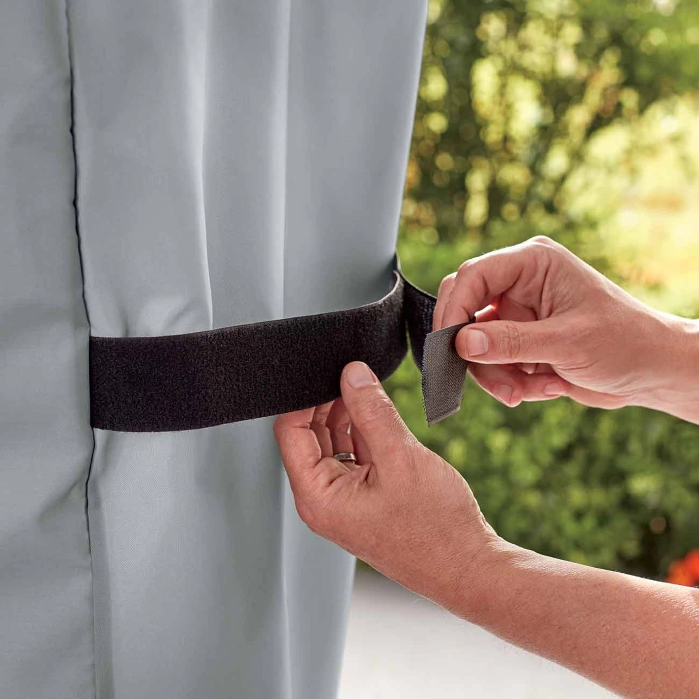 Elle permet de protéger le barbecue, ainsi que les placards de rangement. Cette housse protège votre barbecue des intempéries et contribue à son maintien en bon état. Des sangles à velcro sont présentes de chaque côté pour la maintenir en place.